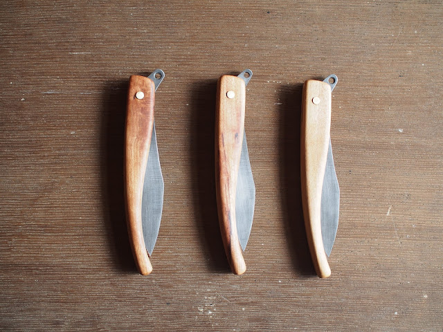 そしてこちらは椿井木工舎が先に柄を作り、それに合わせてヒラバヤシヒデユキカコウジョが刃を付けたフォールディングナイフ。